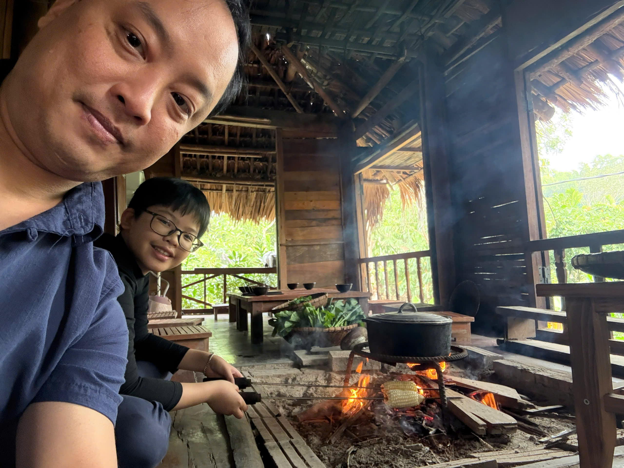 Chimay ngồi nhóm bếp