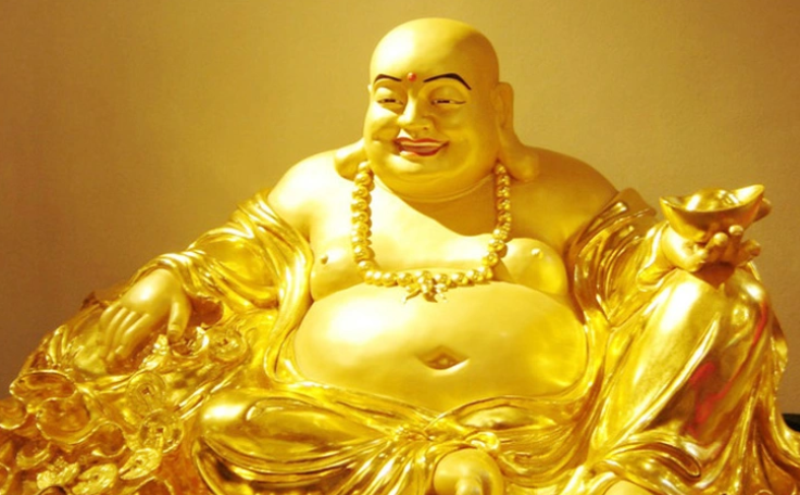 Các bác cứ thử ngắm kỹ cái lão này mà xem, nghĩ ngộ đáo để. Quanh năm ngày tháng cởi trần phanh ngực, bụng phệ ra như cái vại mắm, tay thì đỡ một đĩnh vàng chóe. Khổ nỗi, thiên hạ xì xụp khấn vái, mâm cao cỗ đầy, cắm cúi xoa bụng lão nhẵn thín để cầu may, nhưng mười người thì chín người rưỡi cứ hau háu dán chặt mắt vào cái cục màu lóa lóa trên tay lão mà thèm thuồng. Tuyệt nhiên chả thấy bố nào buồn ngước lên nhìn cái bản mặt lão cả. Đâm ra, thiên hạ lố nhố đi rước vàng lại rủ nhau bỏ quên mất cái thứ "oách" nhất.